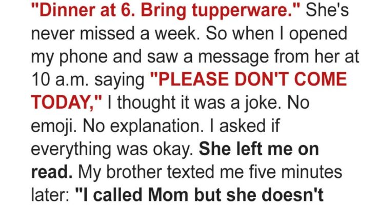 When Mom canceled our weekly family dinner with a short, cold text, my brother and I knew something was terribly wrong. What we discovered when we rushed to her house changed everything we thought we knew about our family.