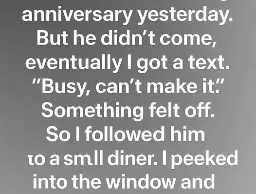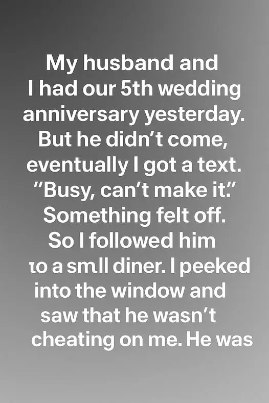 The next day, my curiosity and concern got the better of me, so I decided to follow him. I saw him enter a small, quiet diner and my heart pounded as I peeked through the window.