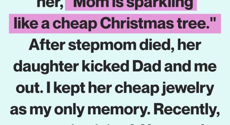 We left with nothing but clothes, a few books, and the small tin box where my stepmom kept her jewelry. I took it without thinking—just something to hold onto, a tiny anchor to the only maternal bond I’d ever known. Most of it looked like thrift-store pieces: faded necklaces, uneven pearls, mismatched earrings.