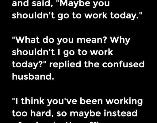 “What do you mean? Why shouldn’t I go to work today?” replied the confused husband. “I think you’ve been working too hard, so maybe instead of going to the office, you should take a few days off, pack a suitcase, and go stay with a friend for a few days away from home to straighten yourself out.”