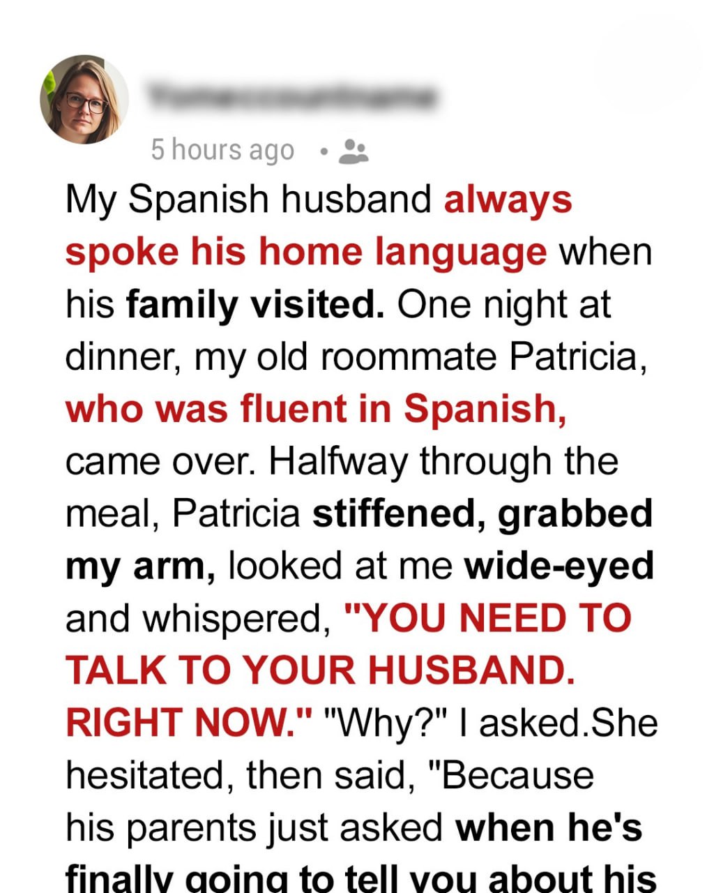 When my Spanish husband spoke to his parents, I never questioned the language barrier — until my friend, fluent in Spanish, joined us for dinner. Halfway through the meal, she grabbed my arm, eyes wide with horror. “You need to talk to your husband. Right now.”The scent of freshly brewed espresso and warm churros filled the air as I sat in a quaint café, journaling my thoughts about Barcelona.