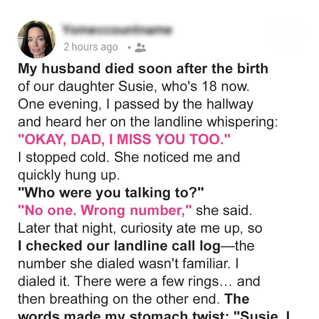 It happened on an ordinary Tuesday evening. I was walking past the hallway when I heard Susie’s voice. It was low, tender, and she was whispering through the landline.