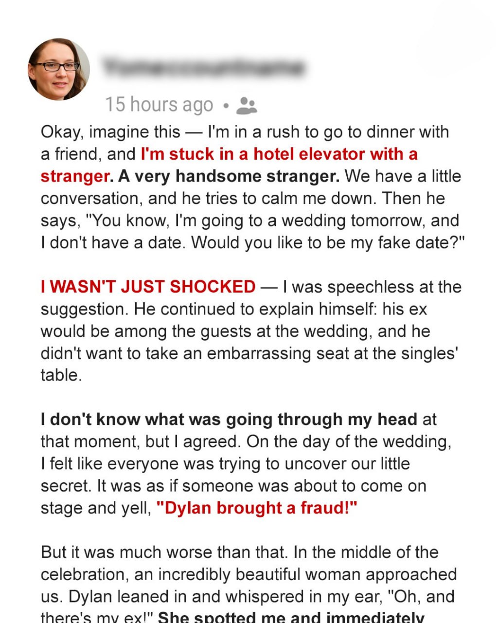 “You’re really asking a total stranger to be your plus-one while we’re trapped in an elevator?”