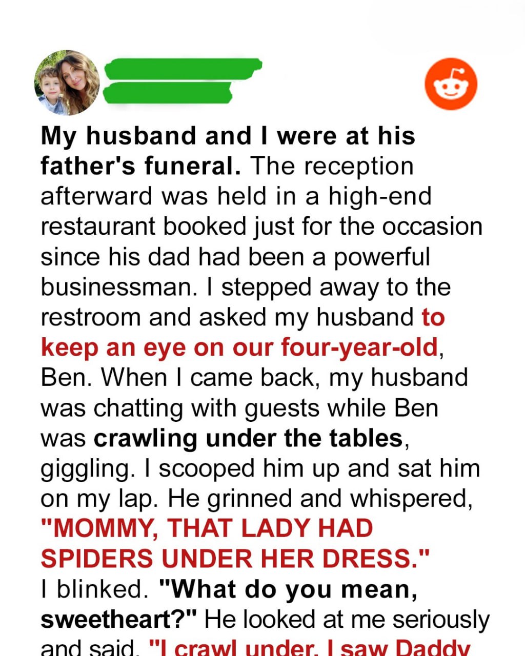 Kids notice things adults miss. My son Ben’s innocent observation at my father-in-law’s funeral revealed a secret hiding in plain sight. One whispered sentence from my four-year-old turned my world upside down.My husband, Arthur, and I have been together for six years.We met at a community book club where people came to share ideas about books after leaving their routines behind for an hour. I went hoping for a good discussion, not expecting anything more.Arthur was there because he’d just moved back to town to help run his father’s company and wanted to make friends.