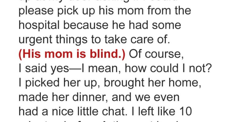 Sometimes, kindness gets punished in ways you don’t see coming. I learned that the hard way when I agreed to help my neighbor. I picked up his blind mother from the hospital, never imagining that my good deed would end with police officers in my living room… accusing me of something I didn’t do.