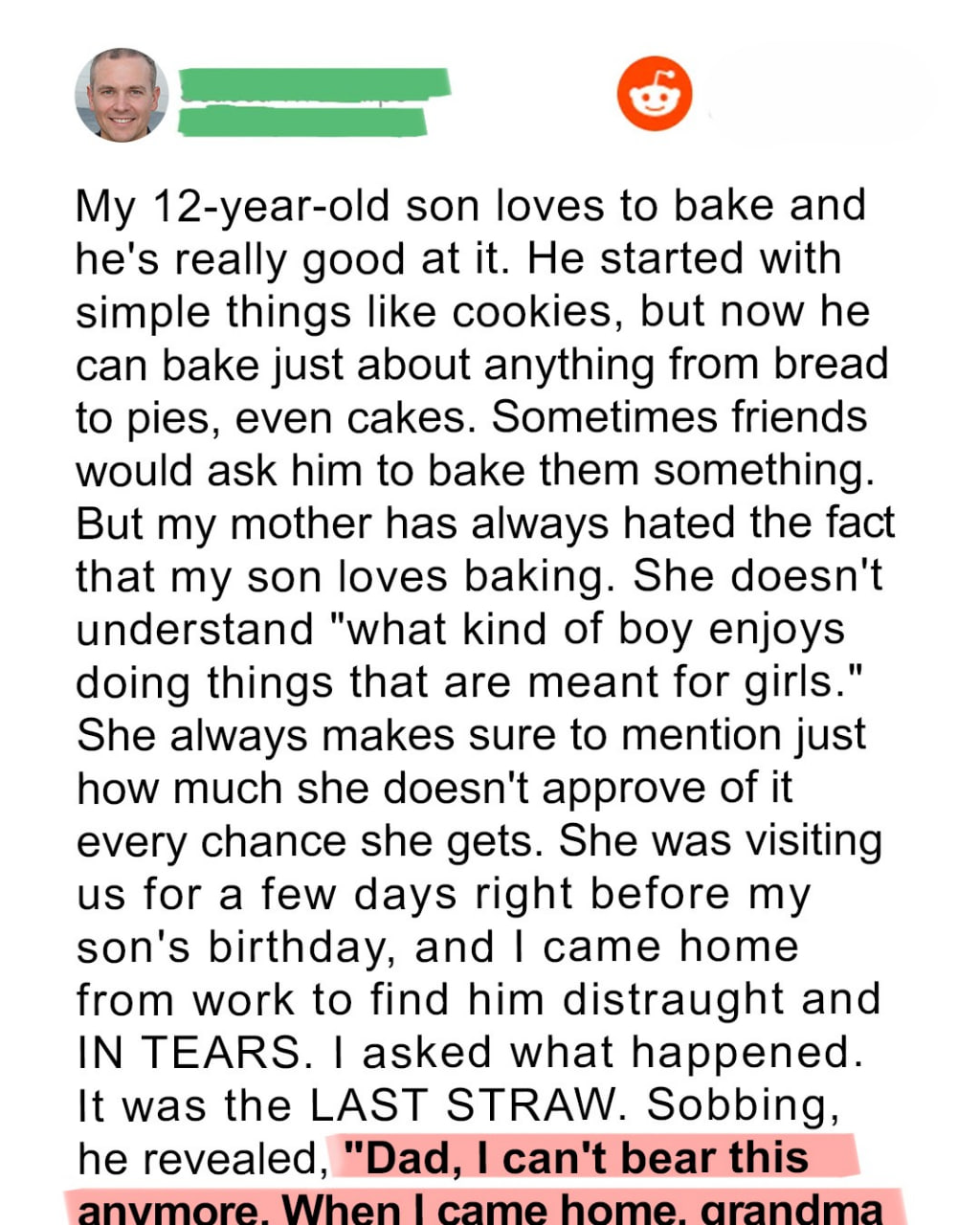 “Dad… why’s Grandma so mean? She hates my baking. She always makes it sound like I’m doing something wrong.”