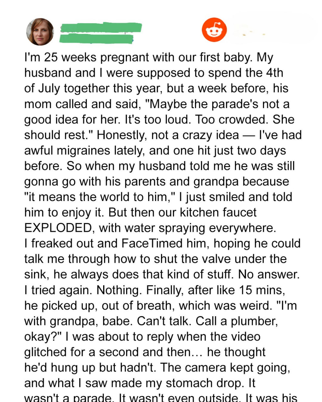 My in-laws said I should skip the 4th of July parade because of my pregnancy migraines. I agreed. But one accidental FaceTime showed me something I was never meant to see. The real reason they didn’t want me there had nothing to do with the noise… and I’m still shaken.I’m Penny, and I’m 25 weeks pregnant with what was supposed to be our miracle baby. Steve and I had been trying for two years, and when those pink lines finally appeared, I thought our lives were falling into place.
