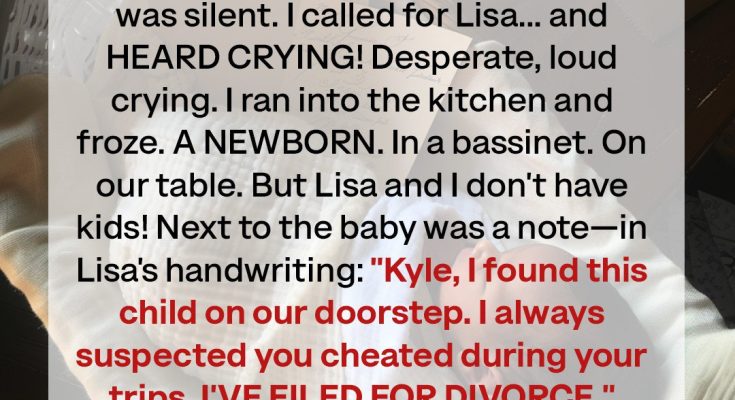 “Jake, I found this child on our doorstep. I always suspected you cheated during your trips. I’ve filed for divorce.”