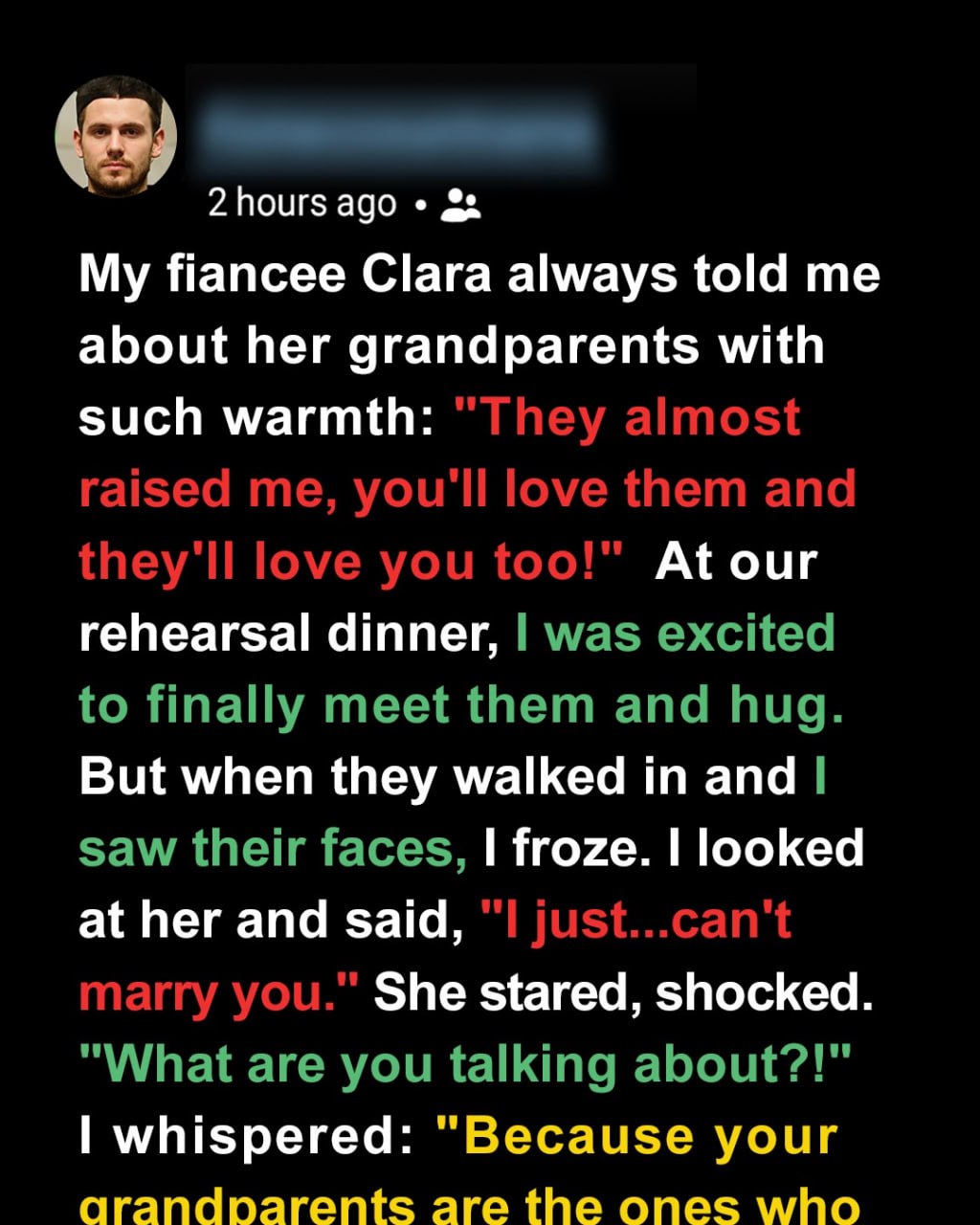 I thought I knew everything about the woman I was about to marry until her grandparents walked into our rehearsal dinner and turned my entire world upside down.People always say you’ll “just know” when you’ve met the right person. I used to think that was nonsense — until I met Clara.I wasn’t even looking for anyone serious when we met. I was recovering from a bad breakup, buried in work, and a little too proud of my new espresso machine.