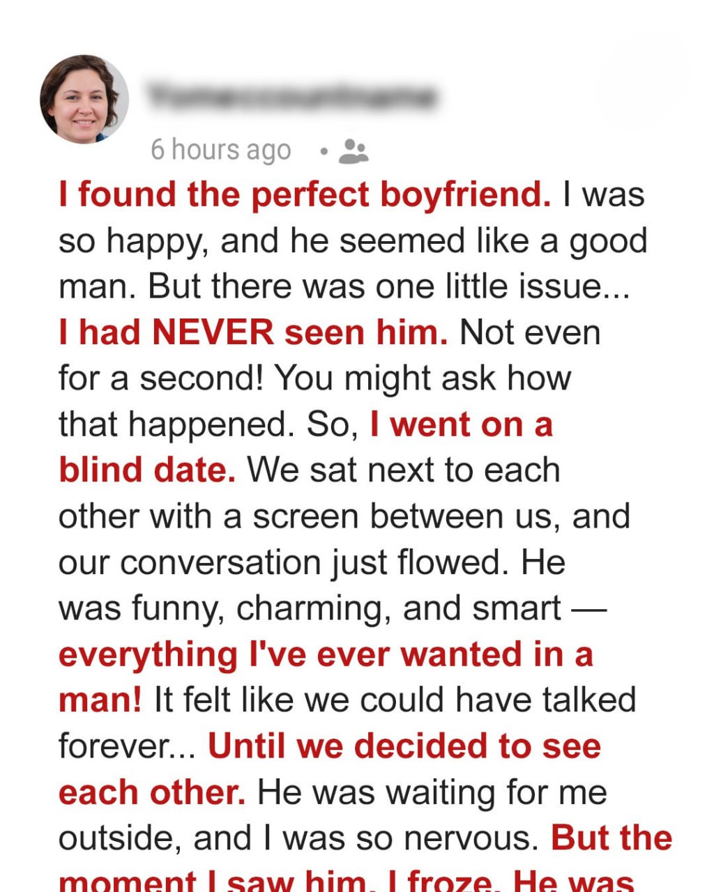 I Spent the Perfect Date with a Man without Ever Seeing His Face, but When I Finally Did, Everything Fell Apart — Story of the Day