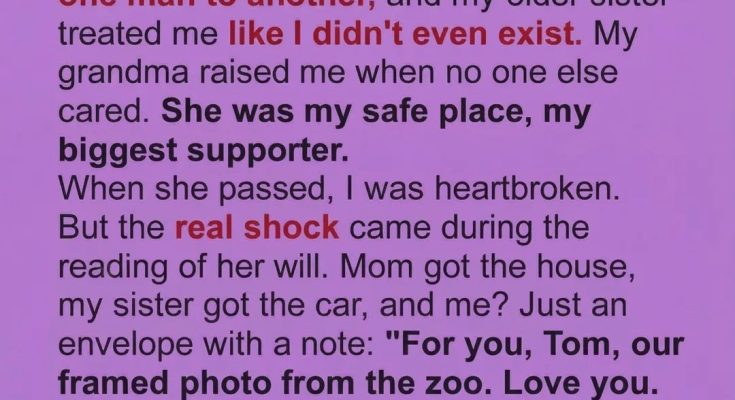 “For you, Tom, our framed photo from the zoo. Love you. Grandma.” I sat there stunned, trying to smile politely while my chest tightened.