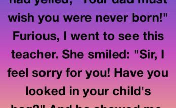 My daughter, 8, came home shaking. Her teacher had yelled, “Your dad must wish you were never born!” Furious, I went to see this teacher. She smiled: “Sir, I feel …